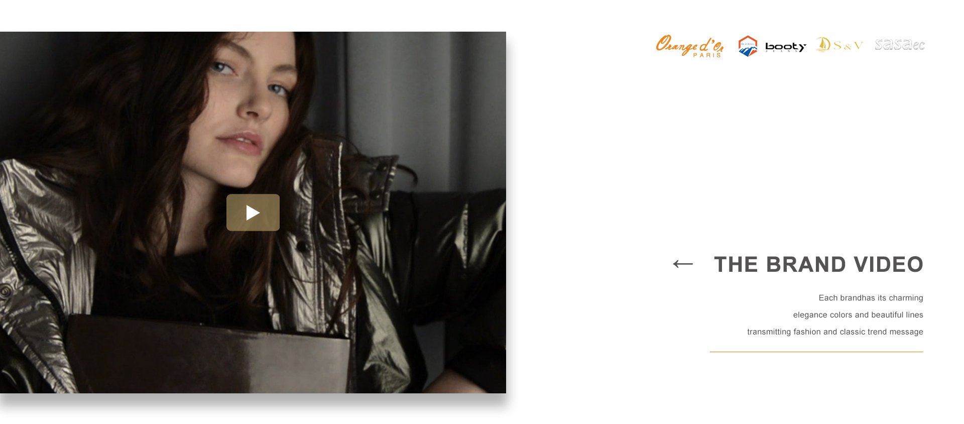 品牌建設(shè)是公司堅持不懈的追求,我們每年都會積極參加國內(nèi)外舉辦的各大服裝展銷會。憑借著良好的質(zhì)量與信譽,市場占有率在逐漸擴大,產(chǎn)品遠(yuǎn)銷歐洲、美洲、亞洲等國。公司以生產(chǎn)棉衣、羽絨服、派克、大衣、夾克、運動休閑服飾等為主,旗下主打品牌有 ORANGE D’OR 、CLAIRVAL、BOOTY JEANS 、S&V和SASAEC,各品牌服飾均以典雅的色彩、優(yōu)美的線條、卓越的魅力吸引著都市麗人,將時尚、經(jīng)典的潮流信息予以淋漓盡致的演繹。